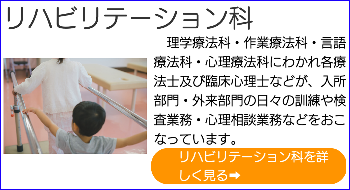 医療サービスのご案内Hospital Work. すべての患者様に同じ治療で進めていくのではなく、その人にあった的確な診断・治療方針などを判りやすく説明し、患者様を支援します。障害のある様々の子供達それぞれに、最善の治療を提供していきます。 詳細は各科をクリック・タップしてください。
